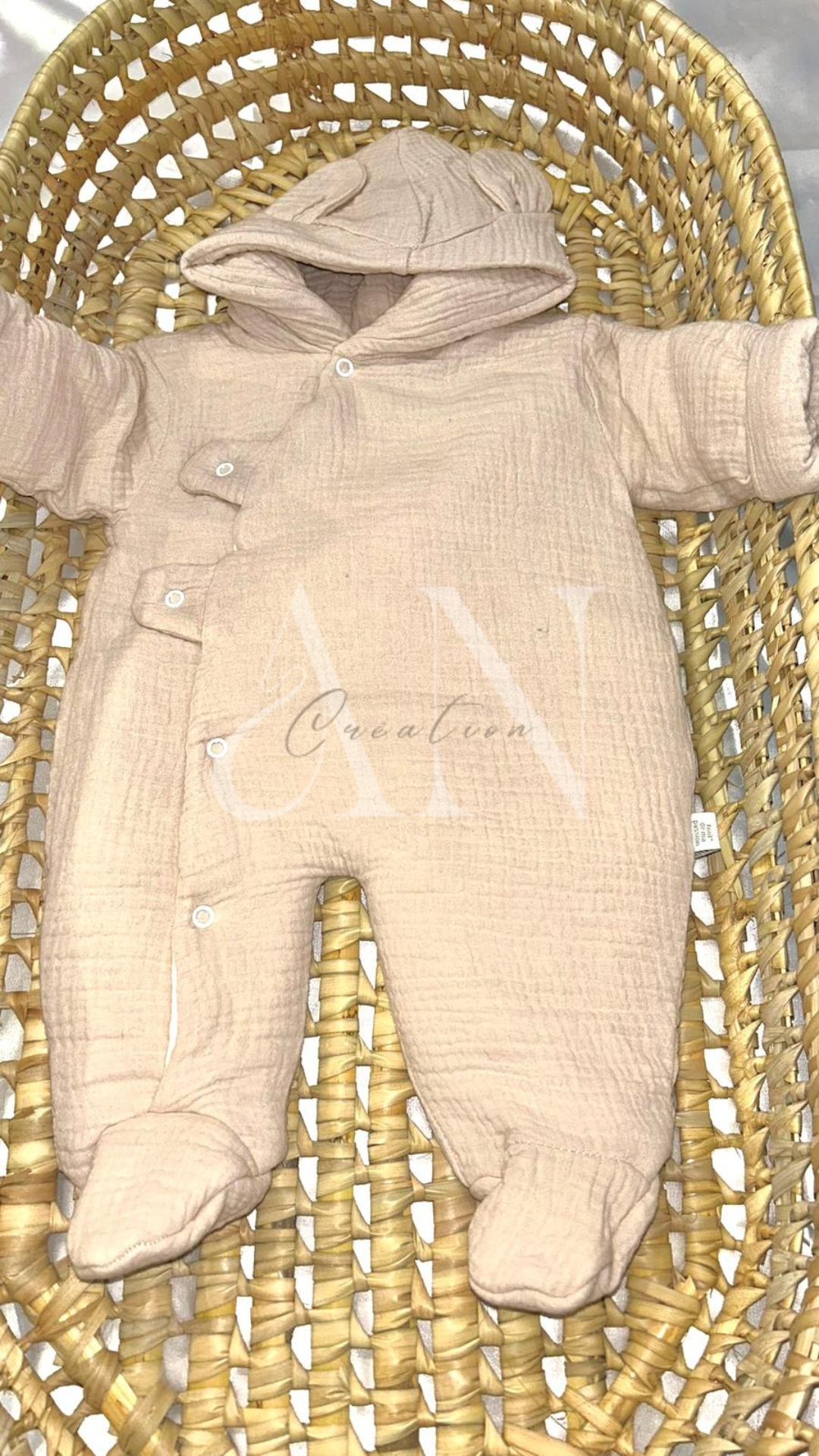 Confectionnée en gaze de coton douce et respirante , elle allie chaleur et légèreté, entraînant toute sensation d'inconfort. Sa conception pratique permet d'habiller bébé facilement, tout en assurant une protection optimale contre le froid.